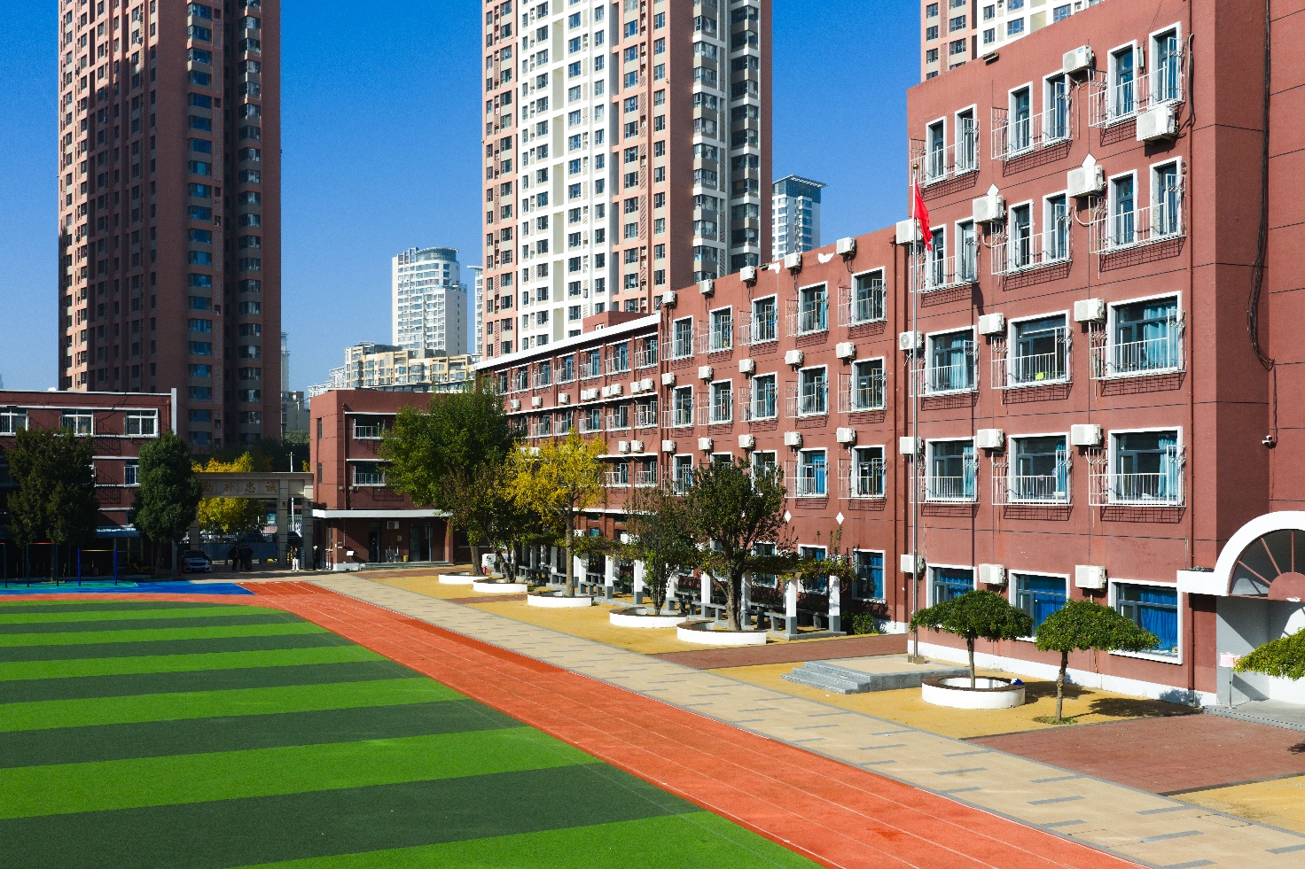 学校拥有体育馆、健身房、美术教室、音乐教室、计算机教室、心理辅导室、图书阅览室等多功能区域,为学生提供了丰富的校园生活。学校实行走读/寄宿双向选择模式,学生宿舍封闭式管理,6人间(空调+独立卫浴),宿舍楼每层有专职生活管理老师,手机统一管理,每天有住宿生晚自习,由年级任课教师值班答疑。学校拥有自营食堂,食品安全接受和平区、河东区主管部门全流程双重监管,菜谱由营养师科学配比,让学生们吃得放心,学生就餐消费第一时间电子信息反馈给家长,实现家校透明互动。